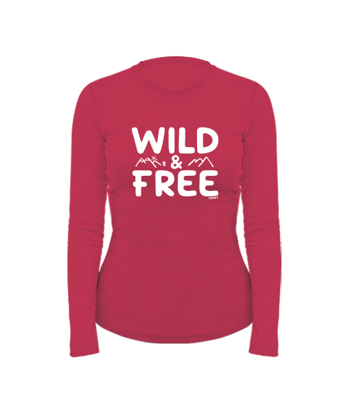 Dámské bavlněné tričko s dlouhým rukávem pro ženy s potiskem 1161 WILD AND FREE v barvě CHILLY PEPPER RED