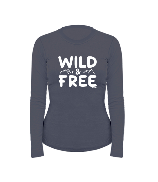 Dámské bavlněné tričko s dlouhým rukávem pro ženy s potiskem 1161 WILD AND FREE v barvě GRAY INK