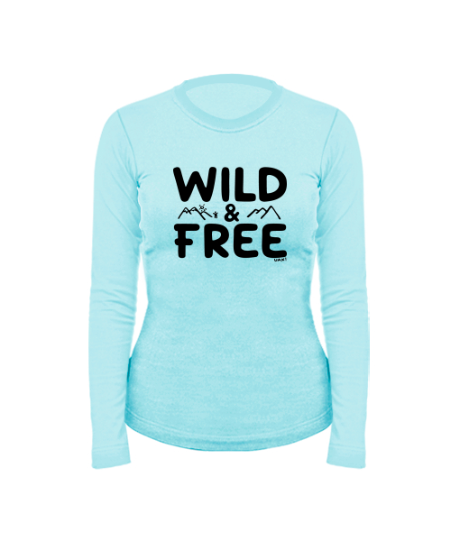 Dámské bavlněné tričko s dlouhým rukávem pro ženy s potiskem 1161 WILD AND FREE v barvě PASTEL BLUE