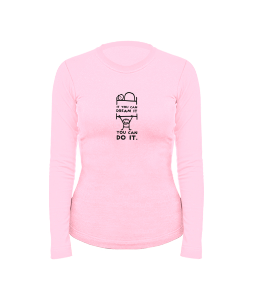 Dámské bavlněné tričko s dlouhým rukávem pro ženy s potiskem 1173 UAX! DO IT v barvě BABY PINK