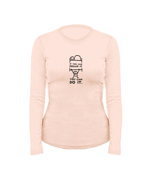 Dámské bavlněné tričko s dlouhým rukávem pro ženy s potiskem 1173 UAX! DO IT v barvě CAPPUCINO