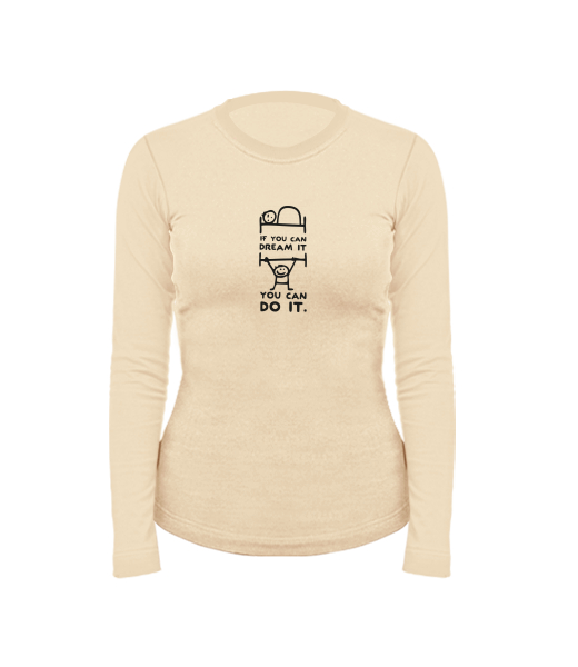 Dámské bavlněné tričko s dlouhým rukávem pro ženy s potiskem 1173 UAX! DO IT v barvě CARAMEL