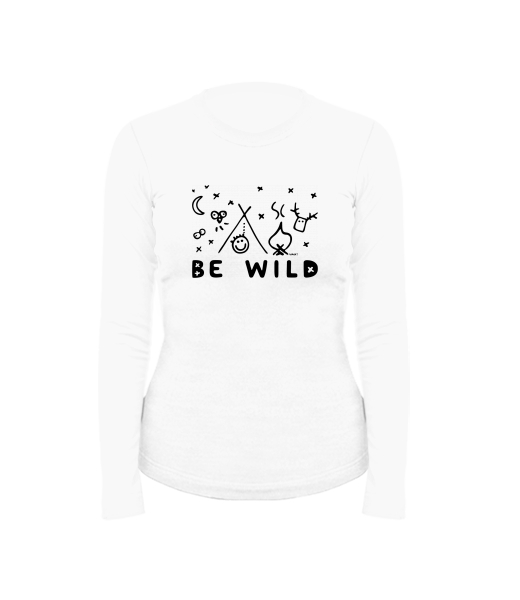 Dámské bavlněné tričko s dlouhým rukávem pro ženy s potiskem 1174 BE WILD v barvě WHITE