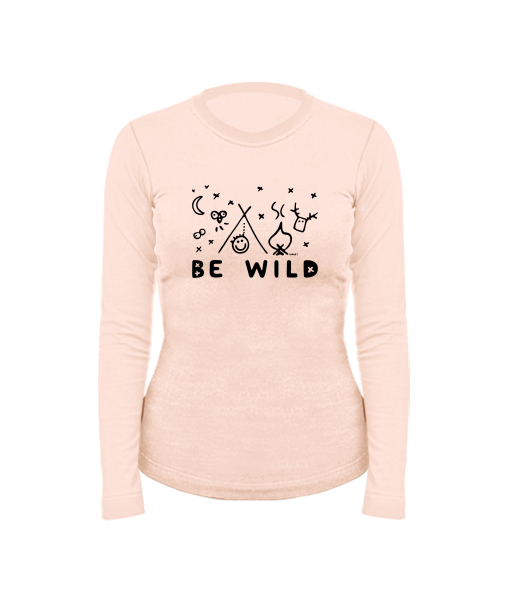 Dámské bavlněné tričko s dlouhým rukávem pro ženy s potiskem 1174 BE WILD v barvě CAPPUCINO