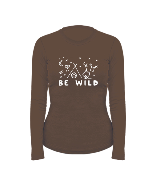 Dámské bavlněné tričko s dlouhým rukávem pro ženy s potiskem 1174 BE WILD v barvě CHESTNUT