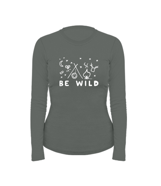 Dámské bavlněné tričko s dlouhým rukávem pro ženy s potiskem 1174 BE WILD v barvě DARK GRAY