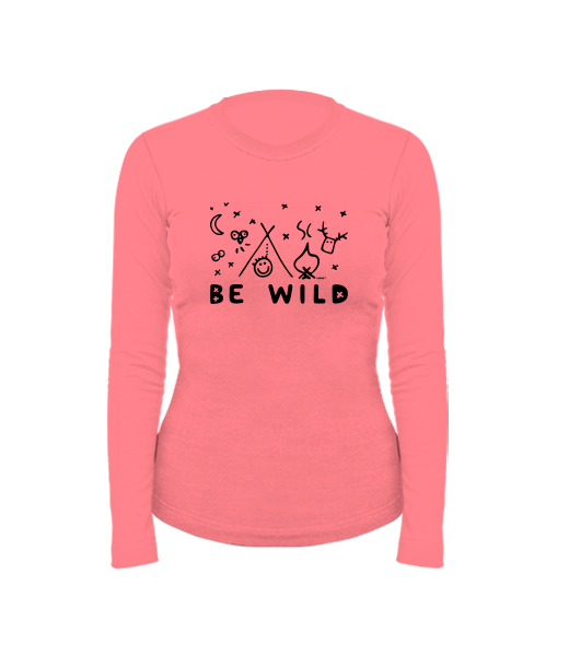 Dámské bavlněné tričko s dlouhým rukávem pro ženy s potiskem 1174 BE WILD v barvě LOSOSOVA