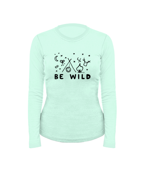 Dámské bavlněné tričko s dlouhým rukávem pro ženy s potiskem 1174 BE WILD v barvě MINT