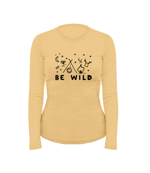Dámské bavlněné tričko s dlouhým rukávem pro ženy s potiskem 1174 BE WILD v barvě MUSTARD
