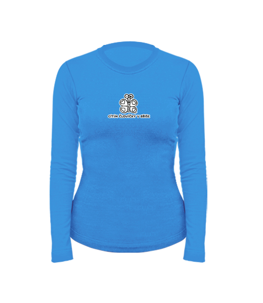 Dámské bavlněné tričko s dlouhým rukávem pro ženy s potiskem 1188 CÍTÍM ČLOVÍČKY V BŘIŠE v barvě CAPRI BLUE