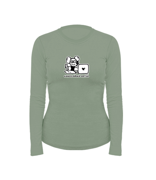 Dámské bavlněné tričko s dlouhým rukávem pro ženy s potiskem 1191 KANCELÁŘSKÁ KRYSA v barvě OLIVA