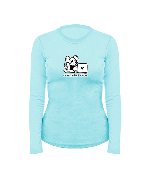 Dámské bavlněné tričko s dlouhým rukávem pro ženy s potiskem 1191 KANCELÁŘSKÁ KRYSA v barvě PASTEL BLUE