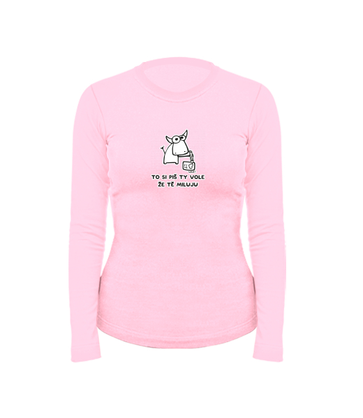 Dámské bavlněné tričko s dlouhým rukávem pro ženy s potiskem 1192 TO SI PIŠ TY VOLE ŽE TĚ MILUJU v barvě BABY PINK