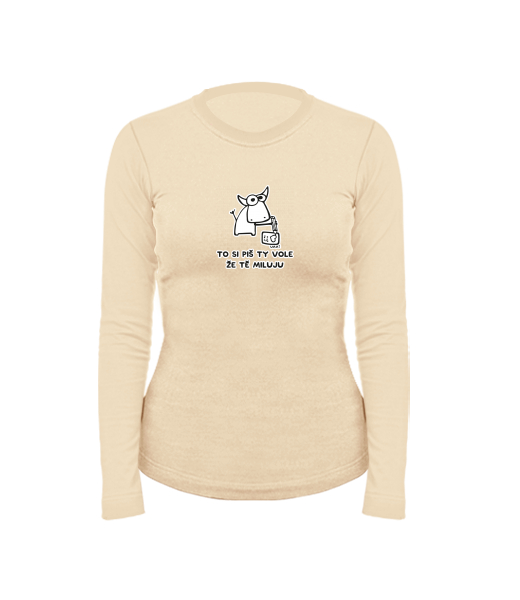 Dámské bavlněné tričko s dlouhým rukávem pro ženy s potiskem 1192 TO SI PIŠ TY VOLE ŽE TĚ MILUJU v barvě CARAMEL