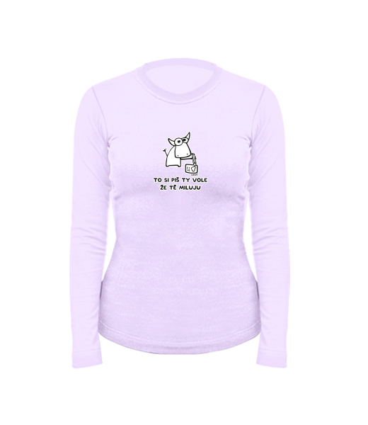 Dámské bavlněné tričko s dlouhým rukávem pro ženy s potiskem 1192 TO SI PIŠ TY VOLE ŽE TĚ MILUJU v barvě LAVENDER