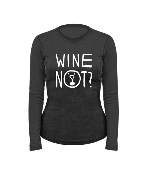 Dámské bavlněné tričko s dlouhým rukávem pro ženy s potiskem 1210 WINE NOT v barvě BLACK