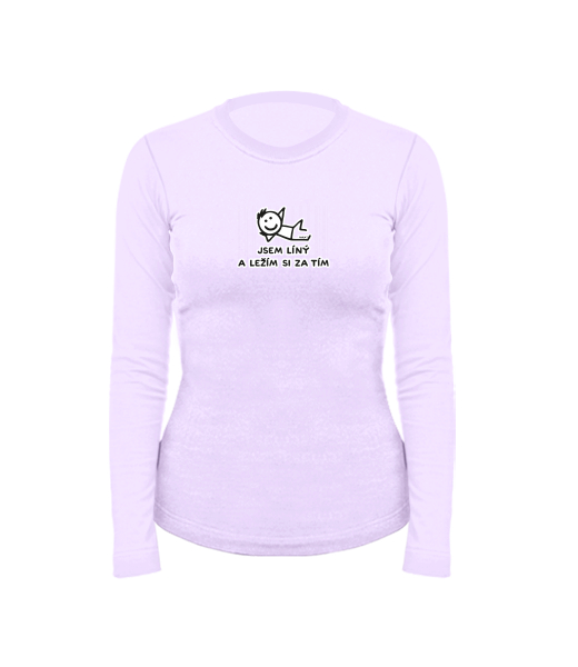 Dámské bavlněné tričko s dlouhým rukávem pro ženy s potiskem 1217 JSEM LÍNÝ A LEŽÍM SI ZA TÍM v barvě LAVENDER