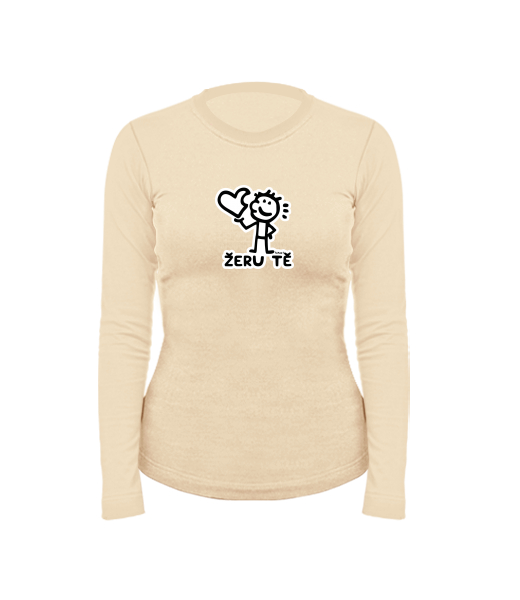 Dámské bavlněné tričko s dlouhým rukávem pro ženy s potiskem 1244 ŽERU TĚ v barvě CARAMEL