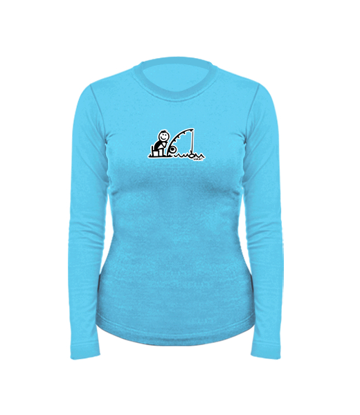 Dámské bavlněné tričko s dlouhým rukávem pro ženy s potiskem 1252 RYBÁŘ v barvě BLUE ATOLL