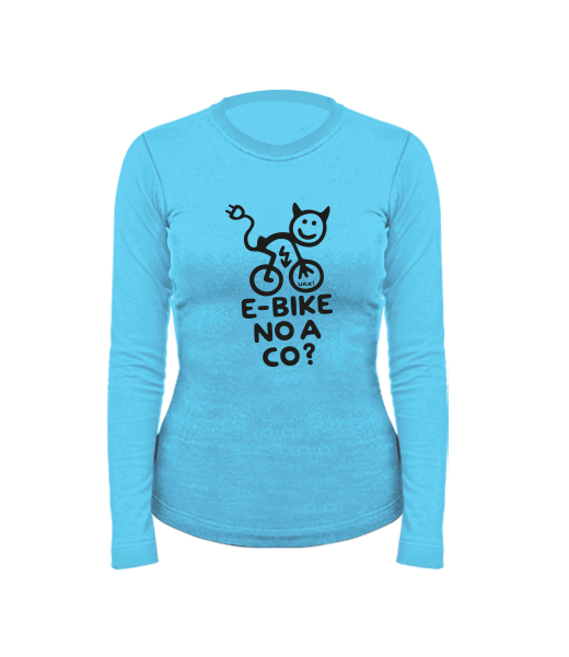 Dámské bavlněné tričko s dlouhým rukávem pro ženy s potiskem 1291 E-BIKE NO A CO? v barvě BLUE ATOLL