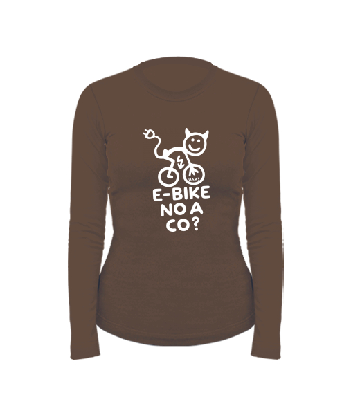 Dámské bavlněné tričko s dlouhým rukávem pro ženy s potiskem 1291 E-BIKE NO A CO? v barvě CHESTNUT