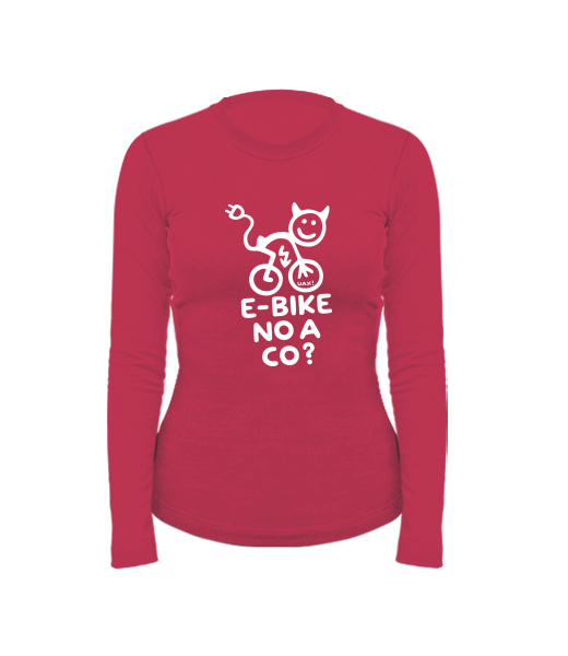 Dámské bavlněné tričko s dlouhým rukávem pro ženy s potiskem 1291 E-BIKE NO A CO? v barvě CHILLY PEPPER RED
