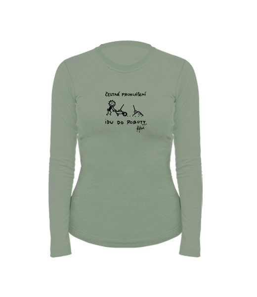 Dámské bavlněné tričko s dlouhým rukávem pro ženy s potiskem 1303 ČESTNÉ PROHLÁŠENÍ IDU DO ROBOTY v barvě OLIVA