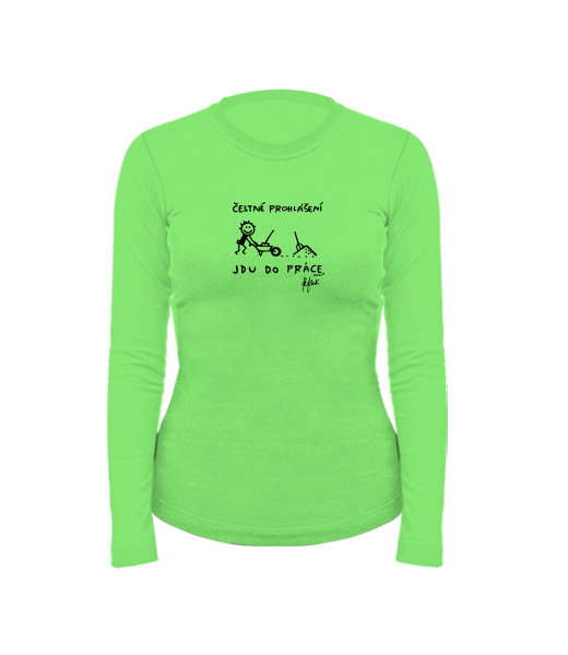Dámské bavlněné tričko s dlouhým rukávem pro ženy s potiskem 1304 ČESTNÉ PROHLÁŠENÍ JDU DO PRÁCE v barvě APPLE