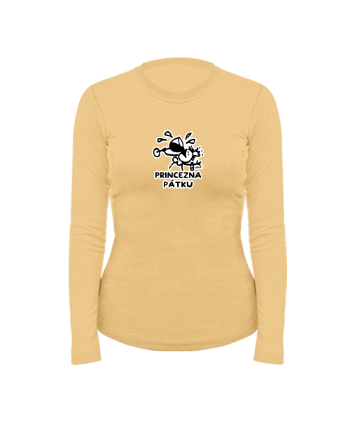 Dámské bavlněné tričko s dlouhým rukávem pro ženy s potiskem 1349 PRINCEZNA PÁTKU v barvě MUSTARD