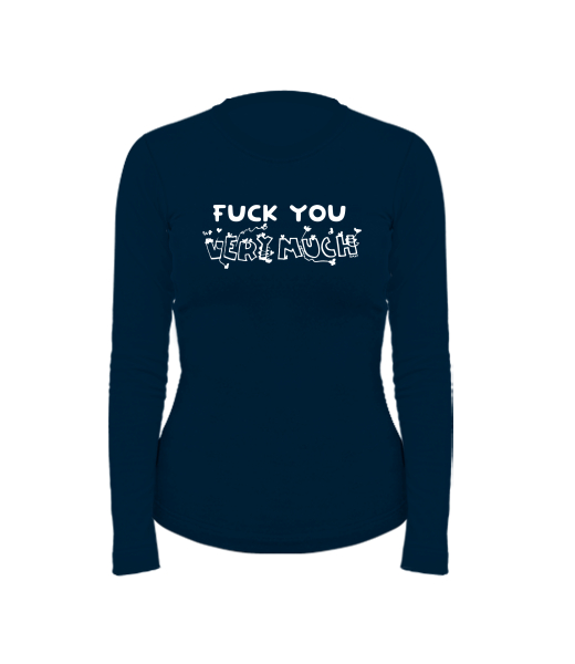 Dámské bavlněné tričko s dlouhým rukávem pro ženy s potiskem 1358 FU VERU MUCH v barvě DARK NAVY