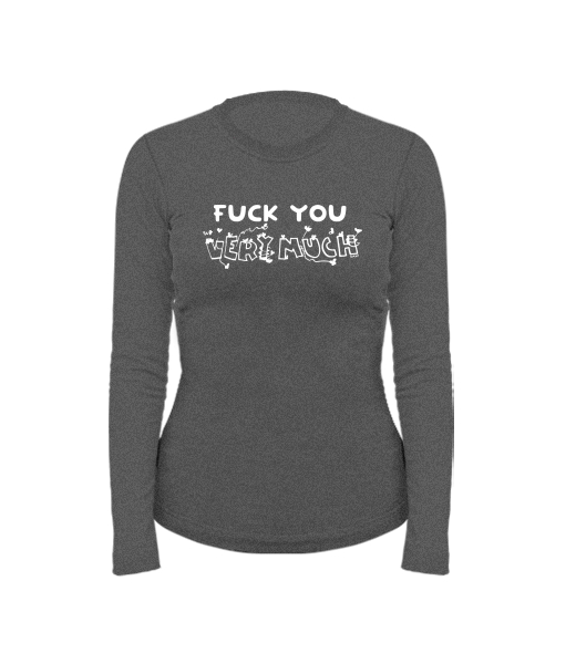 Dámské bavlněné tričko s dlouhým rukávem pro ženy s potiskem 1358 FU VERU MUCH v barvě GRAFIT