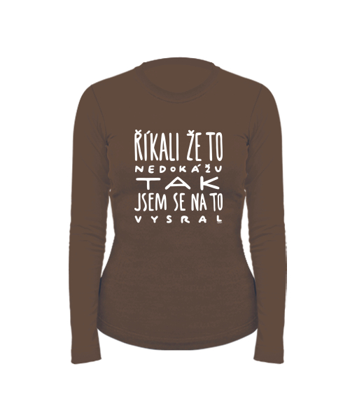Dámské bavlněné tričko s dlouhým rukávem pro ženy s potiskem 1366 ŘÍKALI ŽE TO NEDOKÁŽU TAK JSEM SE NA TO VYSRAL v barvě CHESTNUT