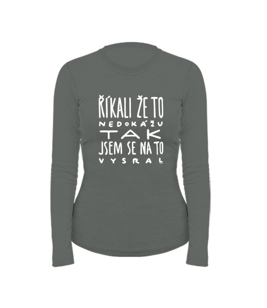 Dámské bavlněné tričko s dlouhým rukávem pro ženy s potiskem 1366 ŘÍKALI ŽE TO NEDOKÁŽU TAK JSEM SE NA TO VYSRAL v barvě DARK GRAY