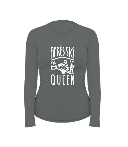 Dámské bavlněné tričko s dlouhým rukávem pro ženy s potiskem 1371 APRÉS SKI QUEEN v barvě DARK GRAY