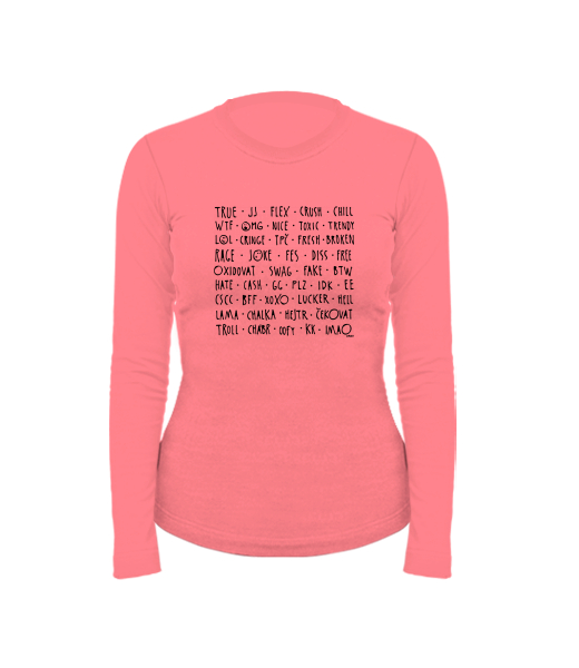 Dámské bavlněné tričko s dlouhým rukávem pro ženy s potiskem 1372 DĚTSKÝ SLANG v barvě LOSOSOVA