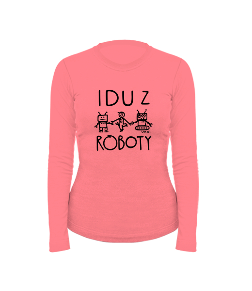 Dámské bavlněné tričko s dlouhým rukávem pro ženy s potiskem 1377 IDU Z ROBOTY 2 v barvě LOSOSOVA