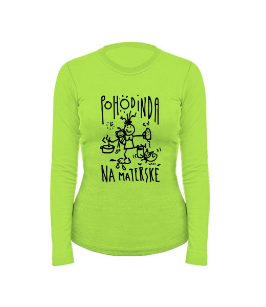 Dámské bavlněné tričko s dlouhým rukávem pro ženy s potiskem 1383 POHODINDA v barvě PARROT GREEN