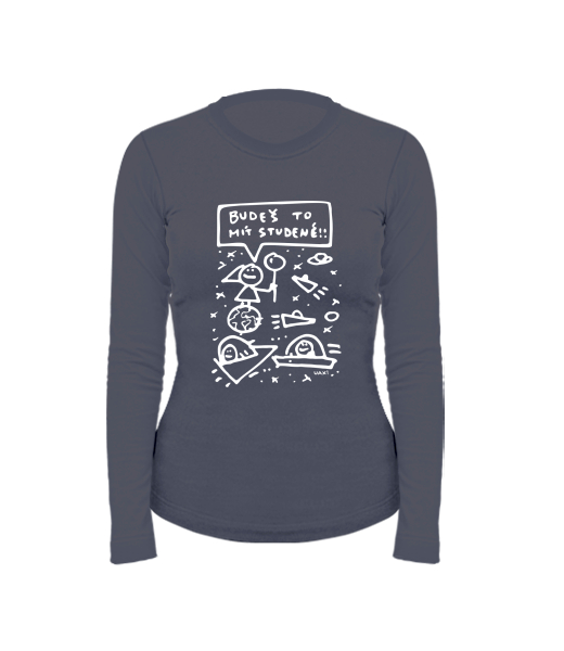 Dámské bavlněné tričko s dlouhým rukávem pro ženy s potiskem 1386 BUDEŠ TO MÍT STUDENÉ v barvě GRAY INK