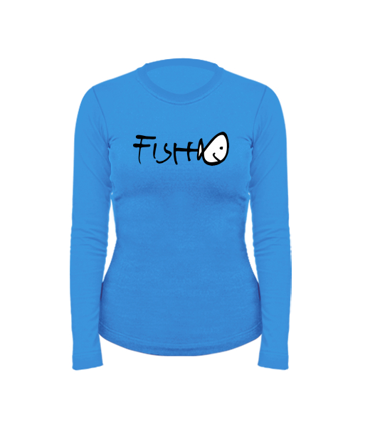 Dámské bavlněné tričko s dlouhým rukávem pro ženy s potiskem 357 FISH v barvě CAPRI BLUE