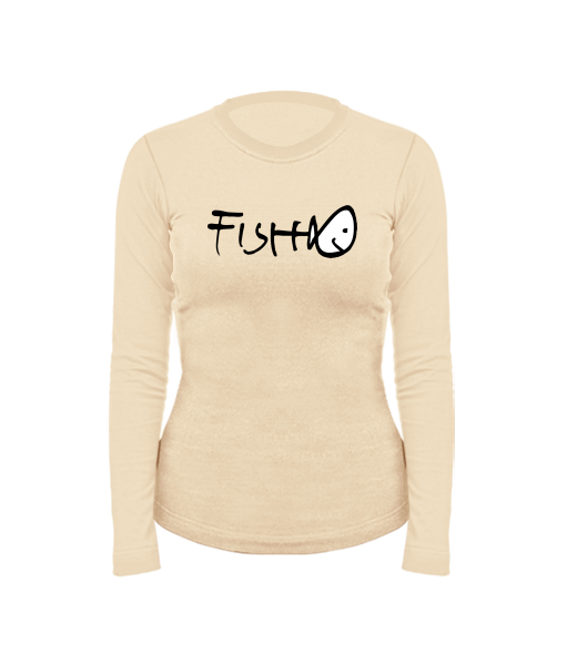 Dámské bavlněné tričko s dlouhým rukávem pro ženy s potiskem 357 FISH v barvě CARAMEL