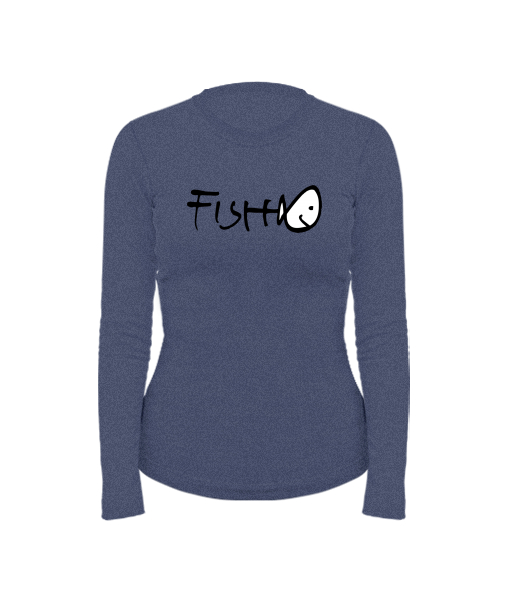 Dámské bavlněné tričko s dlouhým rukávem pro ženy s potiskem 357 FISH v barvě JEANS