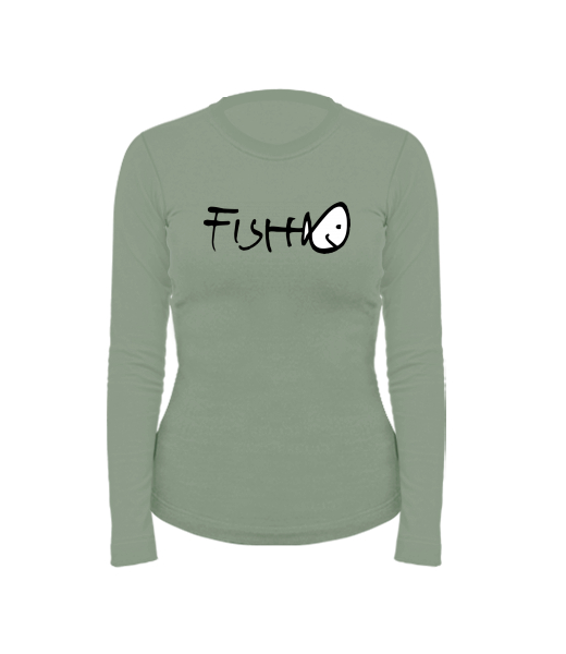 Dámské bavlněné tričko s dlouhým rukávem pro ženy s potiskem 357 FISH v barvě OLIVA