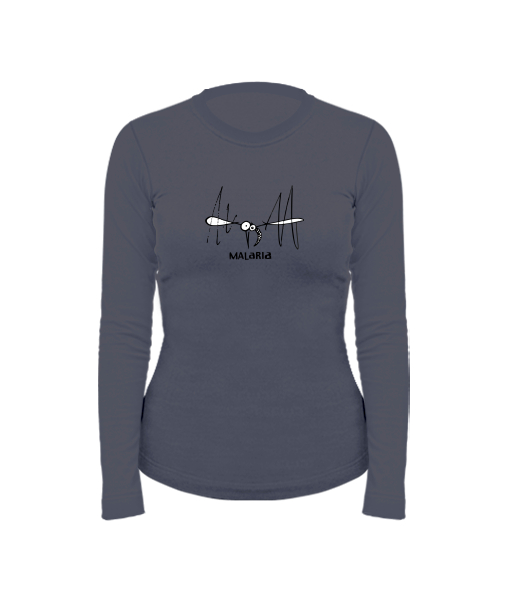 Dámské bavlněné tričko s dlouhým rukávem pro ženy s potiskem 361 MALARIA v barvě GRAY INK