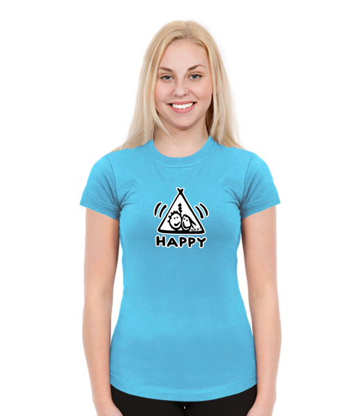 Dámská trička SKRATDA NEW pro ženy s potiskem 1113 HAPPY v barvě BLUE ATOLL