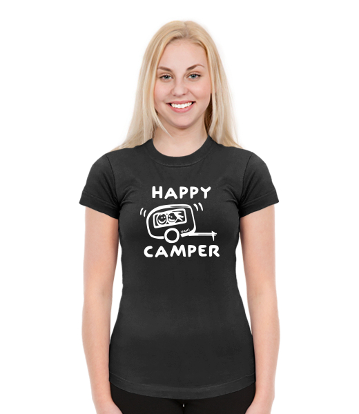 Dámská trička SKRATDA NEW pro ženy s potiskem 1116 HAPPY CAMPER v barvě BLACK