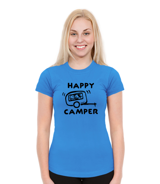Dámská trička SKRATDA NEW pro ženy s potiskem 1116 HAPPY CAMPER v barvě CAPRI BLUE