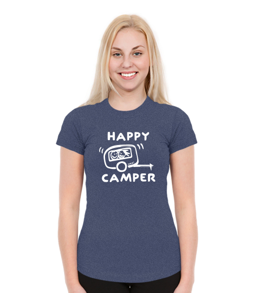 Dámská trička SKRATDA NEW pro ženy s potiskem 1116 HAPPY CAMPER v barvě JEANS