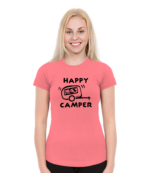 Dámská trička SKRATDA NEW pro ženy s potiskem 1116 HAPPY CAMPER v barvě LOSOSOVA