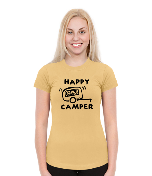 Dámská trička SKRATDA NEW pro ženy s potiskem 1116 HAPPY CAMPER v barvě MUSTARD