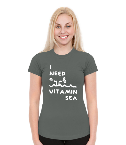 Dámská trička SKRATDA NEW pro ženy s potiskem 1132 I NEED VITAMIN SEA v barvě DARK GRAY